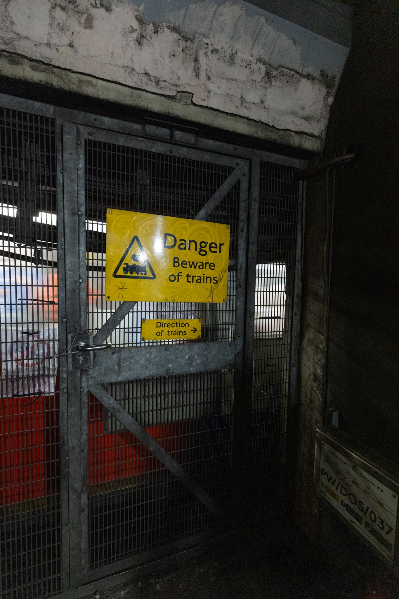 The one thing you cannot fail to notice is the regular rumble and then breeze as the trains pass by. At the bottom of the stairs that lead to the old platforms, there are metal gates which act as emergency evacuation points but also allow you to stand literally inches from the passing trains which is quite an intimidating experience.