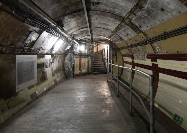 The platforms were bricked up, and a warren of offices, dormitories and a telephone exchange were built. Many of these still exist albeit in a very dusty and abandoned state. It is also believed that Winston Churchill visited the bunker and took shelter there from the bombing of London.